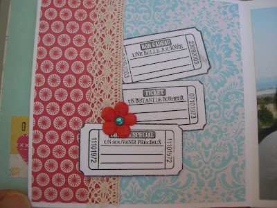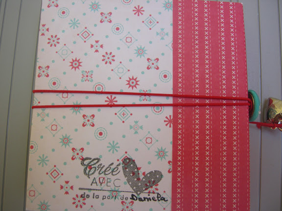 Il risultato è un piccolo album con tasche in cui inserire tags. Ho usato 2 collezioni di carte diverse, di cui una 10x10 vecchissima. l'album si chiude con un filo elastico fermato su una brad a bottone in stoffa.